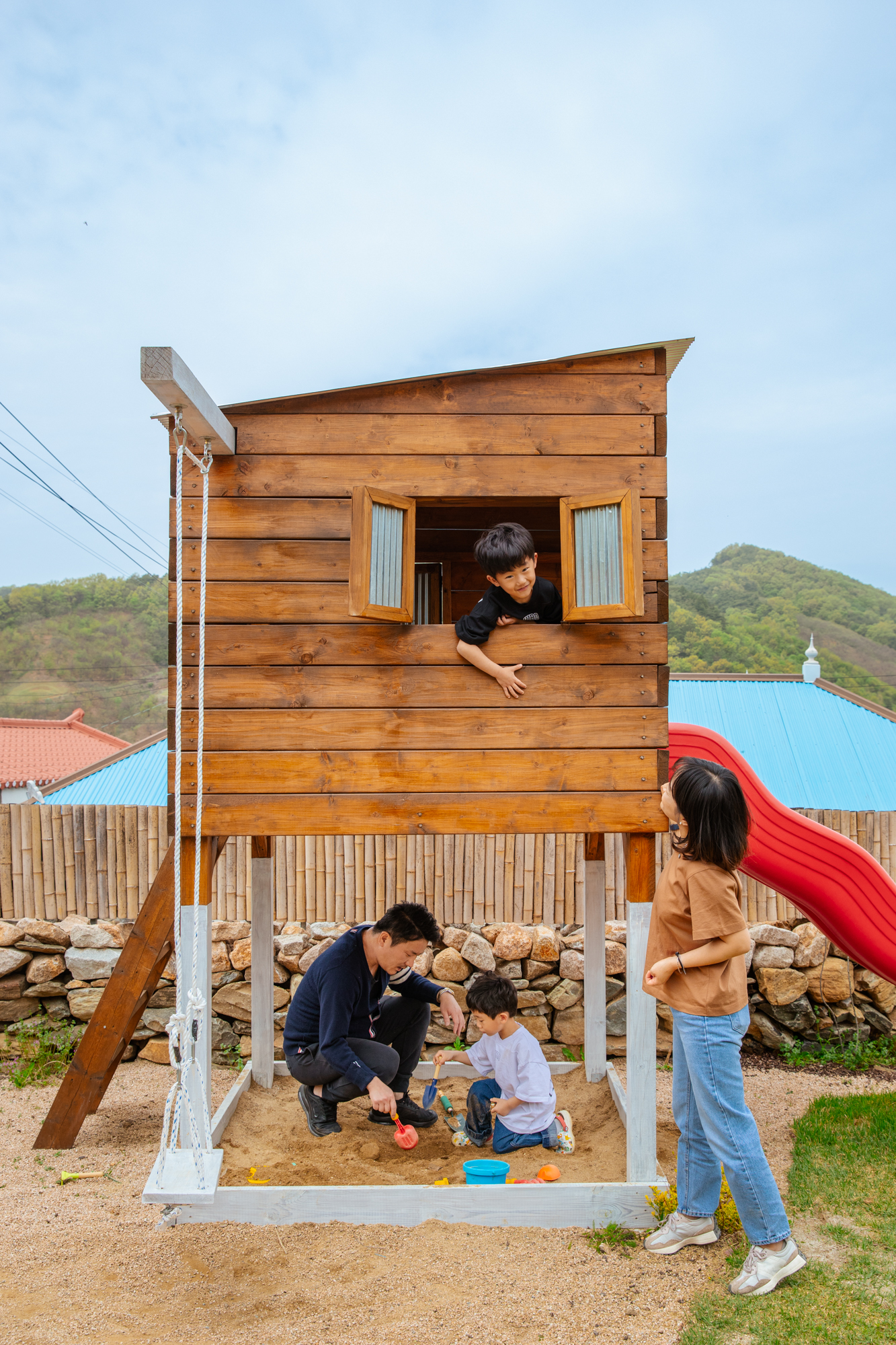 한지은 : 아직 우리 집, 남의 집이라는 개념이 없어서 그냥 공주집이라고 생각하는 것 같아요. 저는 강원도에 할머니집이 있었는데, 어릴 때 밤에 자려고 불 끄면 칠흑 같은 어둠이 내려앉던 장면이 아직도 기억에 남아 있어요. 아이들에게는 이 집이 그런 장소로 기억될 것 같아요. 논밭을 뛰어다니거나 시냇가에서 우렁을 발견하고 풀을 관찰하는 일들이 이제 아이들이 경험하기 어려운 것이 되다 보니 이곳에서 보내는 시간 자체가 귀한 추억입니다.